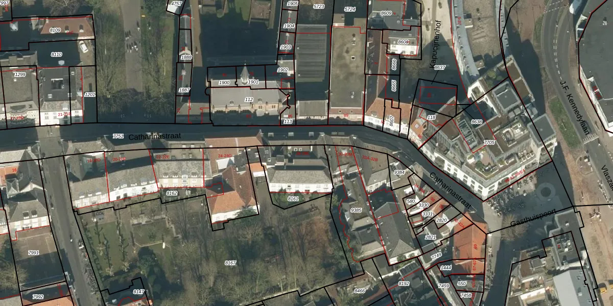 Het perceel waarop Catharinastraat 28 staat heeft een oppervlakte van 394 m². Dit is een groot perceel. De perceeloppervlakte wordt geregistreerd door het Kadaster. Gedetailleerde informatie over de maten van dit perceel kunt u vinden in het rapport Kadastrale kaart met maatvoering van Catharinastraat 28.