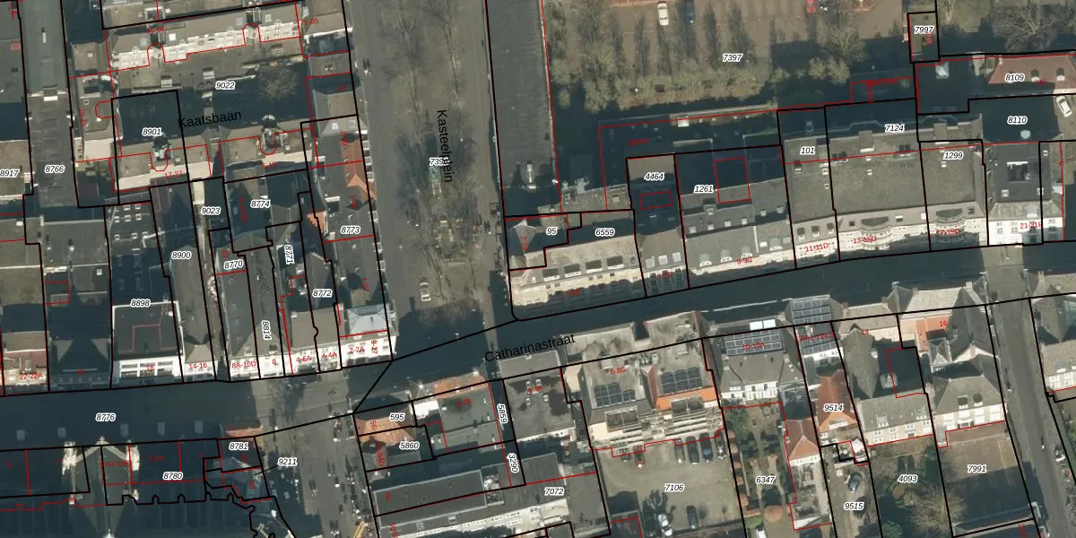 Het perceel waarop Catharinastraat 3-B staat heeft een oppervlakte van 339 m². Dit is een groot perceel. De perceeloppervlakte wordt geregistreerd door het Kadaster. Gedetailleerde informatie over de maten van dit perceel kunt u vinden in het rapport Kadastrale kaart met maatvoering van Catharinastraat 3-B.
