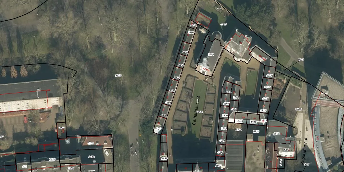 Het perceel waarop Catharinastraat 35 staat heeft een oppervlakte van 38 m². Dit is een klein perceel. De perceeloppervlakte wordt geregistreerd door het Kadaster. Gedetailleerde informatie over de maten van dit perceel kunt u vinden in het rapport Kadastrale kaart met maatvoering van Catharinastraat 35.