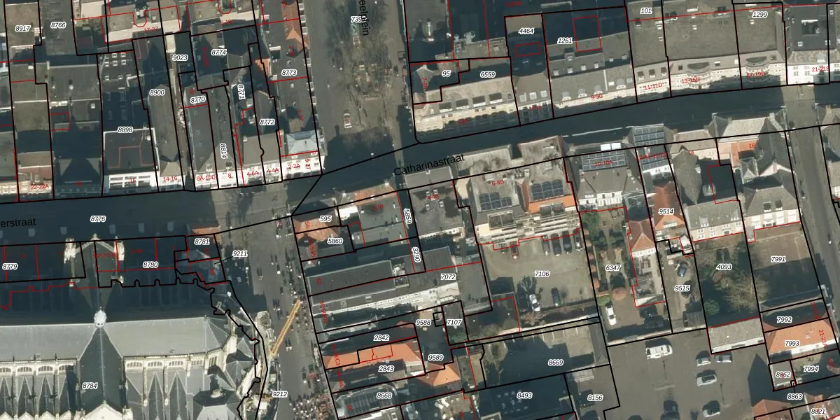 Het perceel waarop Catharinastraat 4-A staat heeft een oppervlakte van 655 m². Dit is een groot perceel. De perceeloppervlakte wordt geregistreerd door het Kadaster. Gedetailleerde informatie over de maten van dit perceel kunt u vinden in het rapport Kadastrale kaart met maatvoering van Catharinastraat 4-A.