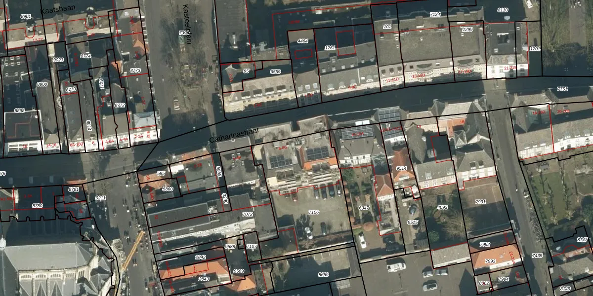 Catharinastraat 8-A is gelegen op kadastraal perceel BDA00B7106. Deze kadastrale aanduiding is uniek en wordt gebruikt door het Kadaster om eigendomsrechten en andere zakelijke rechten vast te leggen. Het perceel maakt onderdeel uit van de kadastrale gemeente Breda.