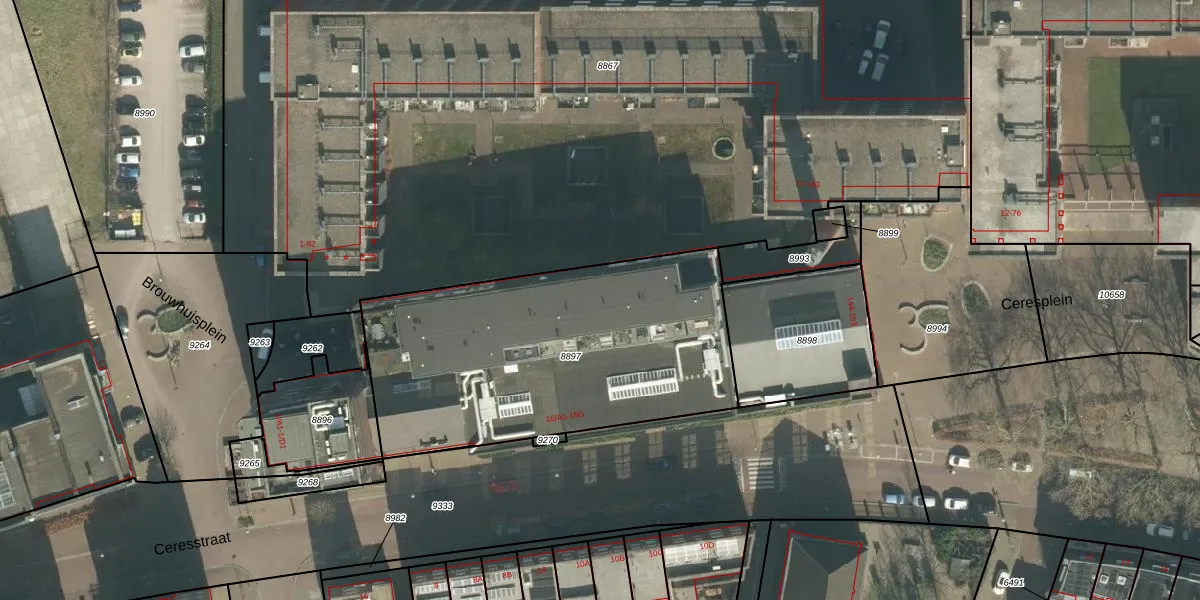 Ceresplein 151 is gelegen op kadastraal perceel BDA00B8897. Deze kadastrale aanduiding is uniek en wordt gebruikt door het Kadaster om eigendomsrechten en andere zakelijke rechten vast te leggen. Het perceel maakt onderdeel uit van de kadastrale gemeente Breda.