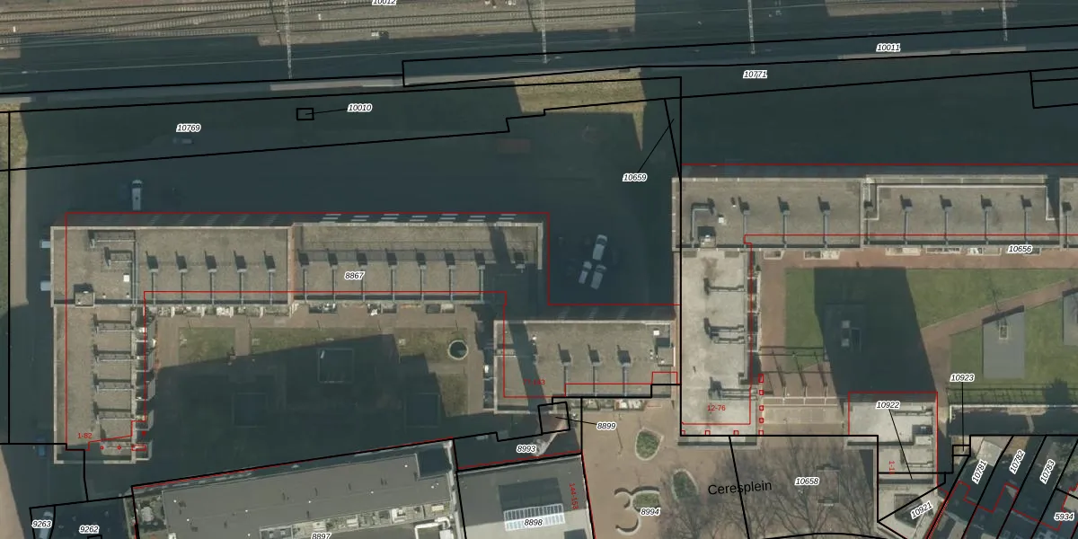 Het perceel waarop Ceresplein 93 staat heeft een oppervlakte van 6995 m². Dit is een zeer groot perceel. De perceeloppervlakte wordt geregistreerd door het Kadaster. Gedetailleerde informatie over de maten van dit perceel kunt u vinden in het rapport Kadastrale kaart met maatvoering van Ceresplein 93.