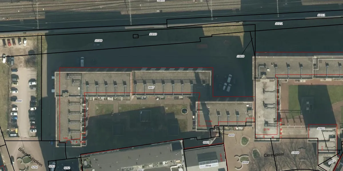 Ceresplein 96 is gelegen op kadastraal perceel BDA00B8867. Deze kadastrale aanduiding is uniek en wordt gebruikt door het Kadaster om eigendomsrechten en andere zakelijke rechten vast te leggen. Het perceel maakt onderdeel uit van de kadastrale gemeente Breda.
