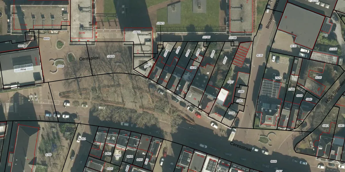 Ceresstraat 25 is gelegen op kadastraal perceel BDA00D10783. Deze kadastrale aanduiding is uniek en wordt gebruikt door het Kadaster om eigendomsrechten en andere zakelijke rechten vast te leggen. Het perceel maakt onderdeel uit van de kadastrale gemeente Breda.