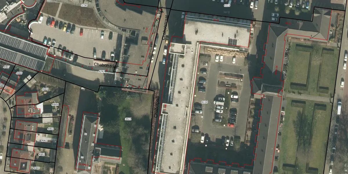 Chabotstraat 39 is gelegen op kadastraal perceel PCH00I6114. Deze kadastrale aanduiding is uniek en wordt gebruikt door het Kadaster om eigendomsrechten en andere zakelijke rechten vast te leggen. Het perceel maakt onderdeel uit van de kadastrale gemeente Princenhage.
