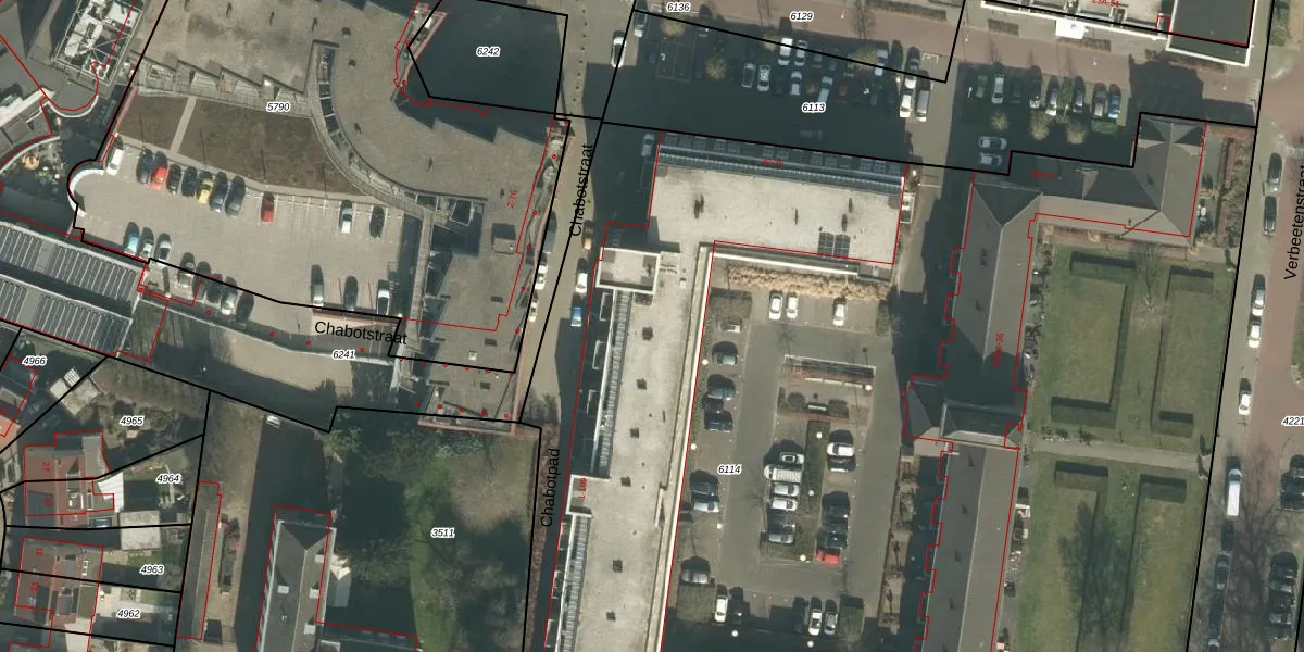 Het perceel waarop Chabotstraat 65 staat heeft een oppervlakte van 1,1 ha. Dit is een zeer groot perceel. De perceeloppervlakte wordt geregistreerd door het Kadaster. Gedetailleerde informatie over de maten van dit perceel kunt u vinden in het rapport Kadastrale kaart met maatvoering van Chabotstraat 65.