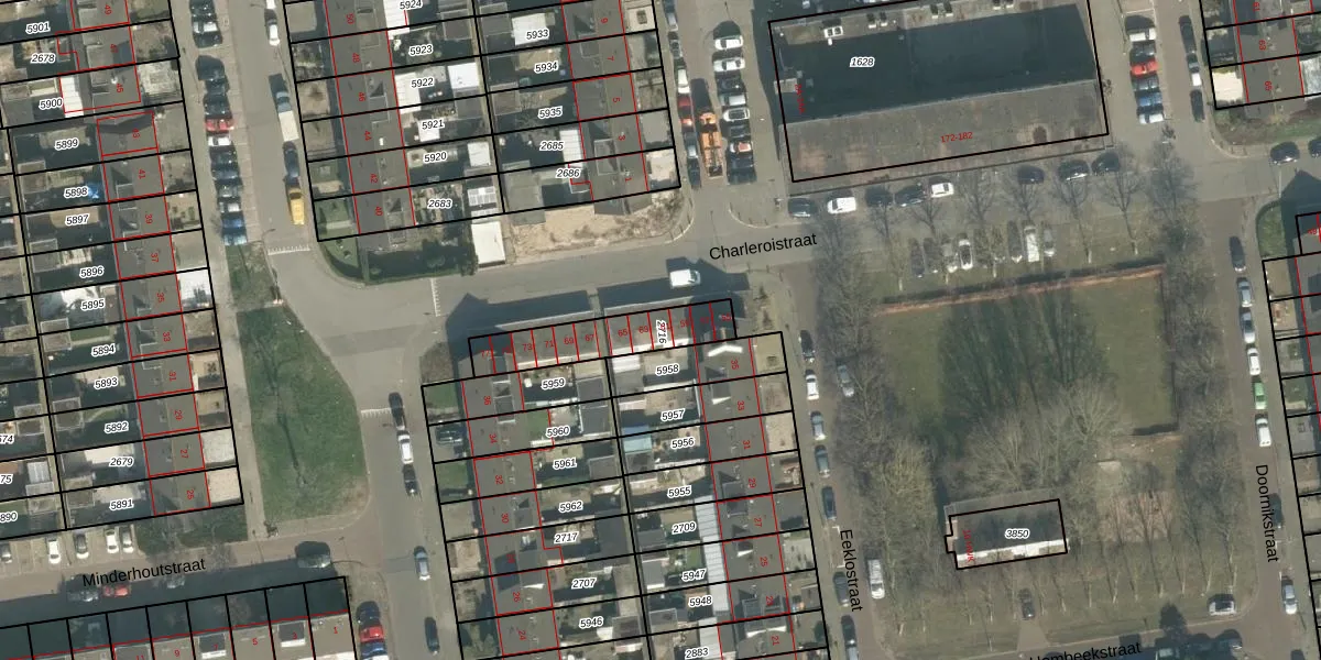 Charleroistraat 61 is gelegen op kadastraal perceel BDA00G2716. Deze kadastrale aanduiding is uniek en wordt gebruikt door het Kadaster om eigendomsrechten en andere zakelijke rechten vast te leggen. Het perceel maakt onderdeel uit van de kadastrale gemeente Breda.