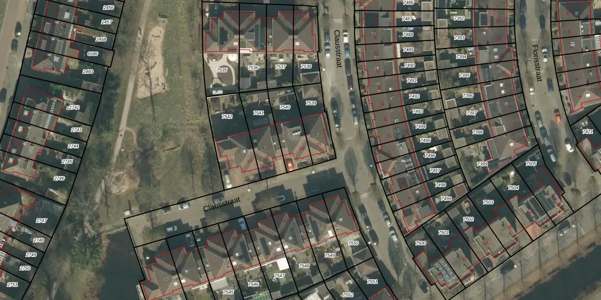 Clausstraat 21 is gelegen op kadastraal perceel BDA00E7540. Deze kadastrale aanduiding is uniek en wordt gebruikt door het Kadaster om eigendomsrechten en andere zakelijke rechten vast te leggen. Het perceel maakt onderdeel uit van de kadastrale gemeente Breda.