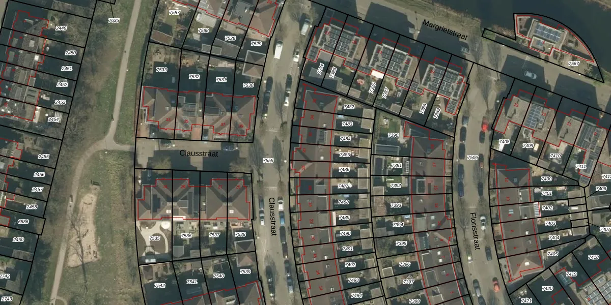 Gebruik de zoekbalk of klik op een perceel voor informatie over de adressen binnen dit perceel.