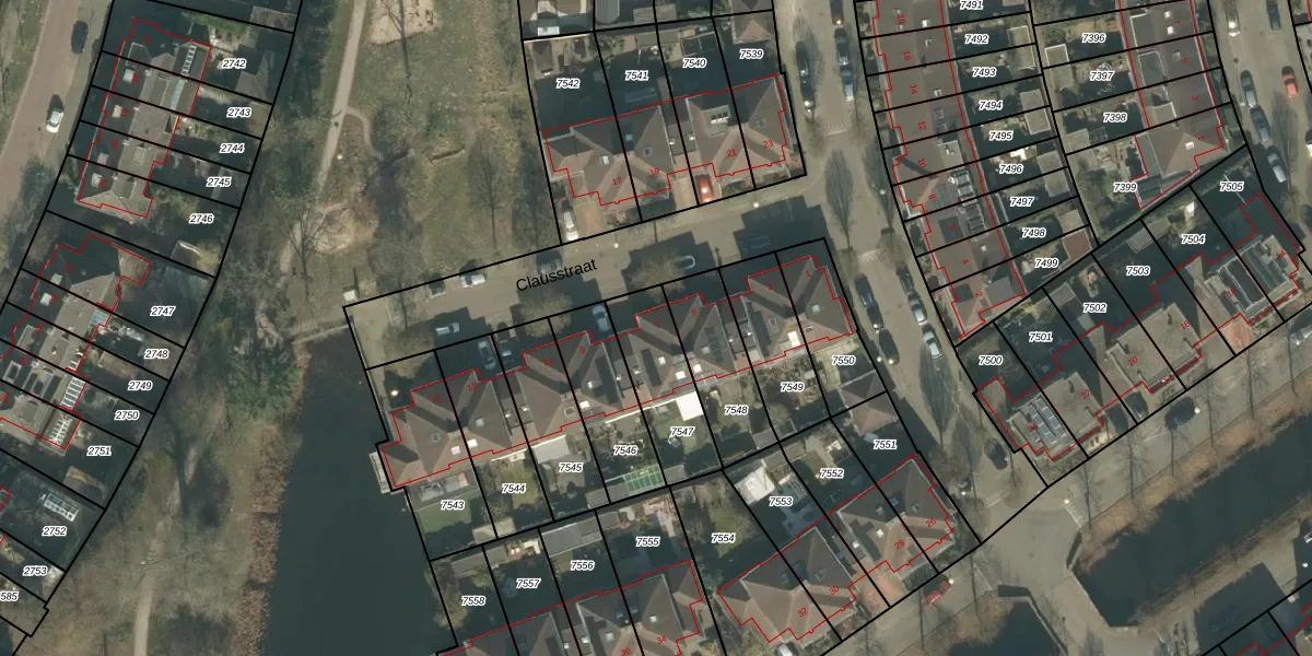 Clausstraat 7 is gelegen op kadastraal perceel BDA00E7547. Deze kadastrale aanduiding is uniek en wordt gebruikt door het Kadaster om eigendomsrechten en andere zakelijke rechten vast te leggen. Het perceel maakt onderdeel uit van de kadastrale gemeente Breda.
