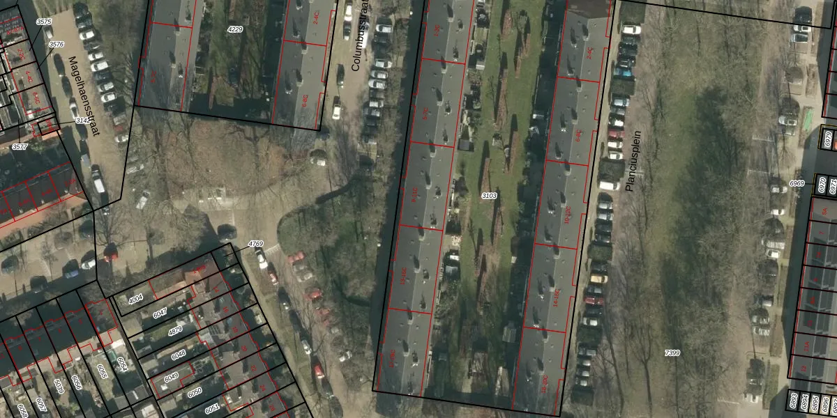 Het perceel waarop Columbusstraat 11-C staat heeft een oppervlakte van 4559 m². Dit is een zeer groot perceel. De perceeloppervlakte wordt geregistreerd door het Kadaster. Gedetailleerde informatie over de maten van dit perceel kunt u vinden in het rapport Kadastrale kaart met maatvoering van Columbusstraat 11-C.