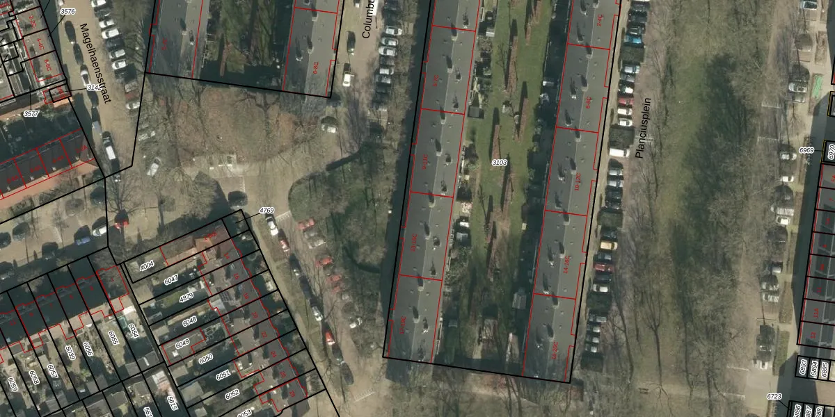 Columbusstraat 13-A is gelegen op kadastraal perceel PCH00I3103. Deze kadastrale aanduiding is uniek en wordt gebruikt door het Kadaster om eigendomsrechten en andere zakelijke rechten vast te leggen. Het perceel maakt onderdeel uit van de kadastrale gemeente Princenhage.