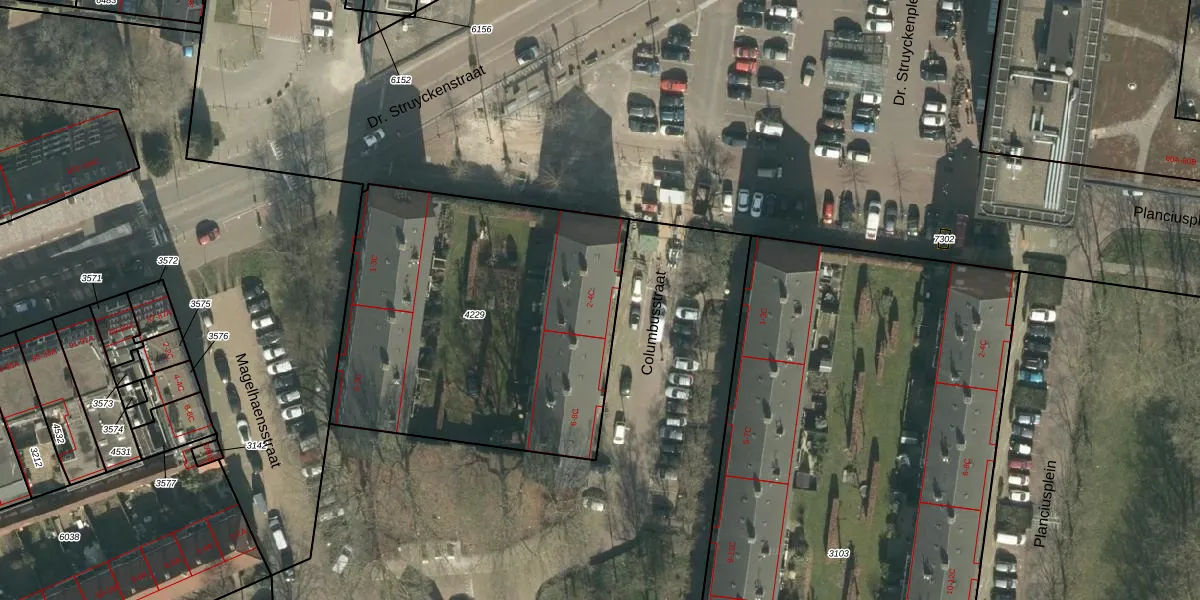 Het perceel waarop Columbusstraat 4-A staat heeft een oppervlakte van 1835 m². Dit is een zeer groot perceel. De perceeloppervlakte wordt geregistreerd door het Kadaster. Gedetailleerde informatie over de maten van dit perceel kunt u vinden in het rapport Kadastrale kaart met maatvoering van Columbusstraat 4-A.