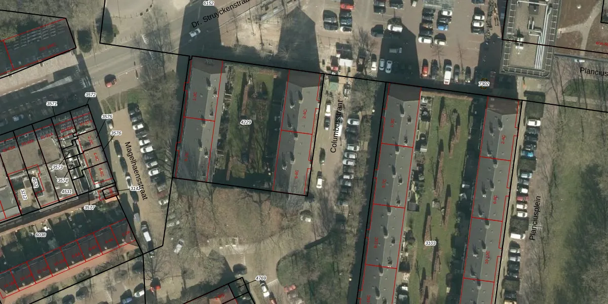 Het perceel waarop Columbusstraat 6-B staat heeft een oppervlakte van 1835 m². Dit is een zeer groot perceel. De perceeloppervlakte wordt geregistreerd door het Kadaster. Gedetailleerde informatie over de maten van dit perceel kunt u vinden in het rapport Kadastrale kaart met maatvoering van Columbusstraat 6-B.