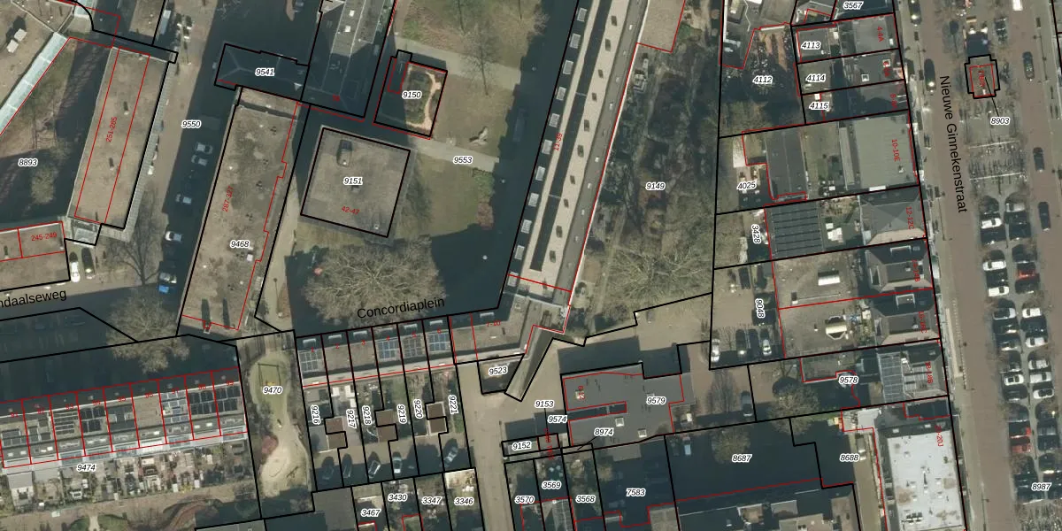 Concordiaplein 39 is gelegen op kadastraal perceel BDA00A9149. Deze kadastrale aanduiding is uniek en wordt gebruikt door het Kadaster om eigendomsrechten en andere zakelijke rechten vast te leggen. Het perceel maakt onderdeel uit van de kadastrale gemeente Breda.
