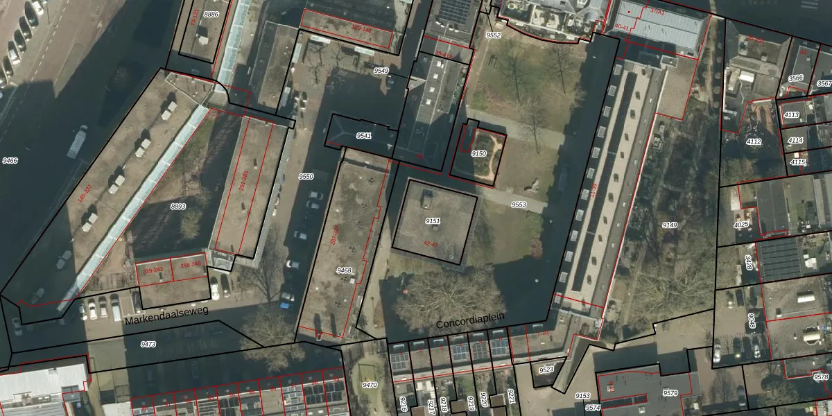 Concordiaplein 43 is gelegen op kadastraal perceel BDA00A9151. Deze kadastrale aanduiding is uniek en wordt gebruikt door het Kadaster om eigendomsrechten en andere zakelijke rechten vast te leggen. Het perceel maakt onderdeel uit van de kadastrale gemeente Breda.