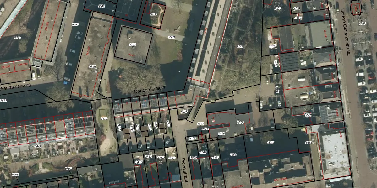 Het perceel waarop Concordiaplein 7 staat heeft een oppervlakte van 3150 m². Dit is een zeer groot perceel. De perceeloppervlakte wordt geregistreerd door het Kadaster. Gedetailleerde informatie over de maten van dit perceel kunt u vinden in het rapport Kadastrale kaart met maatvoering van Concordiaplein 7.