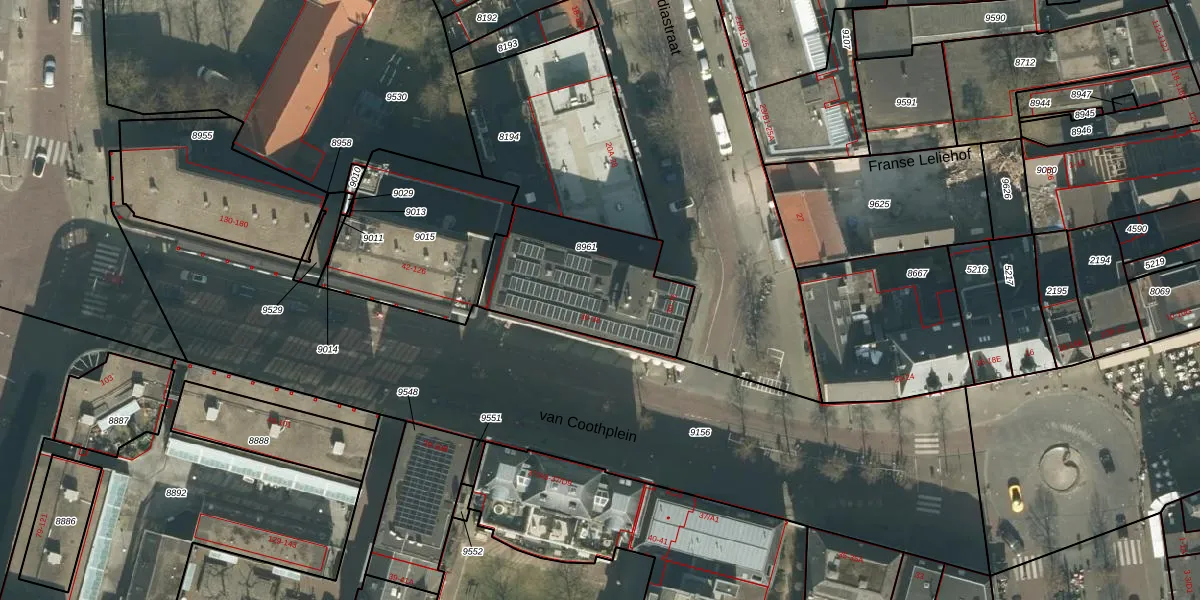 Het perceel waarop het adres ligt is BDA00-A-8961. De afkorting 'BDA00' staat voor kadastrale gemeente Breda. Het perceel is kleiner dan gemiddeld in Breda. Het perceel is 572 m² groot, terwijl het gemiddelde ligt op 1059,1 m². Het kleinste perceel in de kadastrale gemeente is 0 m² groot. De grootste perceeloppervlakte is 44,1 ha. Er zijn 26 adressen aanwezig op het perceel. De huidige grenzen van het perceel zijn digitaal in de Basisregistratie Kadaster (BRK) geregistreerd op 17-10-2006.
