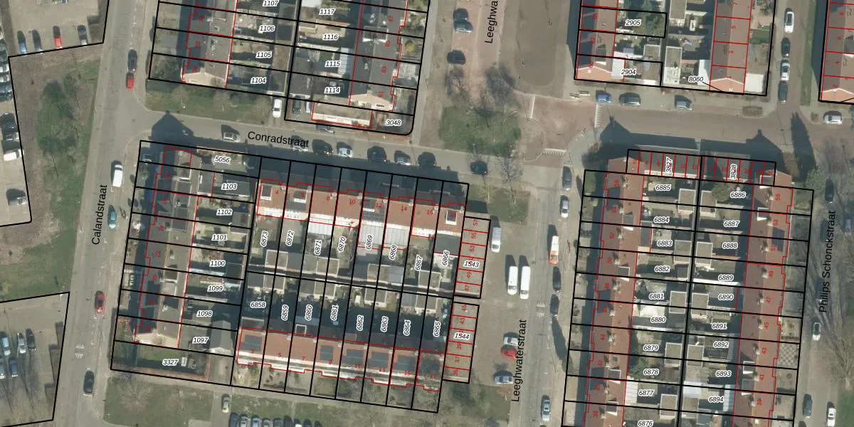 Het perceel waarop Conradstraat 16 staat heeft een oppervlakte van 162 m². Dit is een middelgroot perceel. De perceeloppervlakte wordt geregistreerd door het Kadaster. Gedetailleerde informatie over de maten van dit perceel kunt u vinden in het rapport Kadastrale kaart met maatvoering van Conradstraat 16.