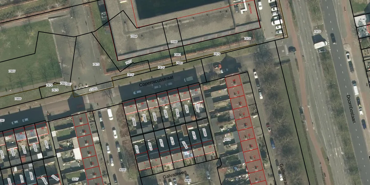 Copernicusstraat 44 is gelegen op kadastraal perceel BDA00D10882. Deze kadastrale aanduiding is uniek en wordt gebruikt door het Kadaster om eigendomsrechten en andere zakelijke rechten vast te leggen. Het perceel maakt onderdeel uit van de kadastrale gemeente Breda.