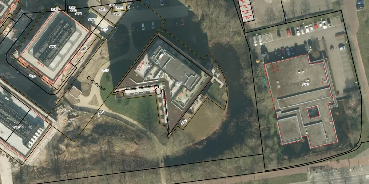 Cosunpark 1-A4 is gelegen op kadastraal perceel PCH00P2595. Deze kadastrale aanduiding is uniek en wordt gebruikt door het Kadaster om eigendomsrechten en andere zakelijke rechten vast te leggen. Het perceel maakt onderdeel uit van de kadastrale gemeente Princenhage.