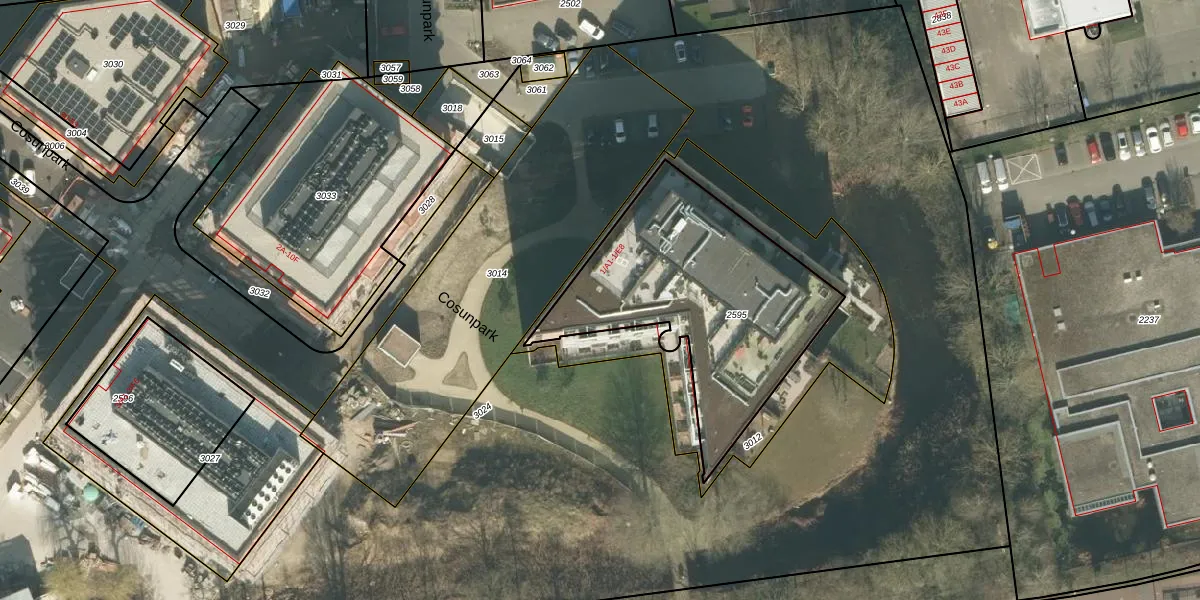 Cosunpark 1-B2 is gelegen op kadastraal perceel PCH00P2595. Deze kadastrale aanduiding is uniek en wordt gebruikt door het Kadaster om eigendomsrechten en andere zakelijke rechten vast te leggen. Het perceel maakt onderdeel uit van de kadastrale gemeente Princenhage.
