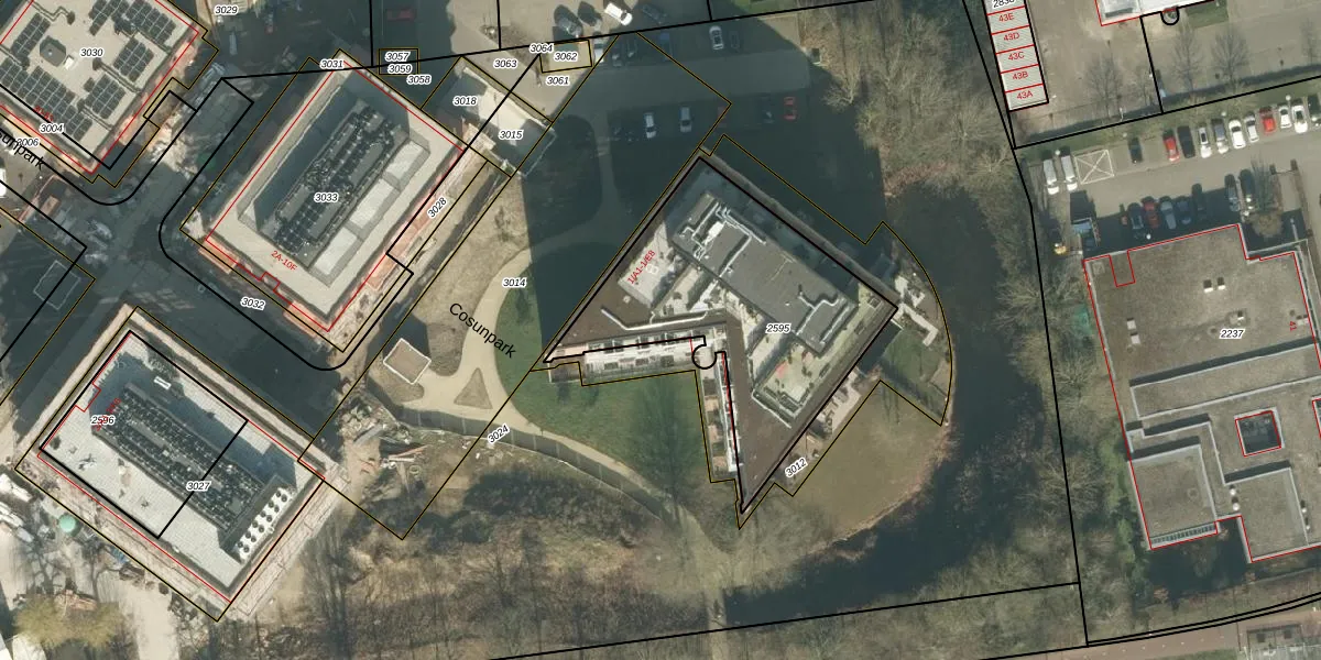 Cosunpark 1-B3 is gelegen op kadastraal perceel PCH00P2595. Deze kadastrale aanduiding is uniek en wordt gebruikt door het Kadaster om eigendomsrechten en andere zakelijke rechten vast te leggen. Het perceel maakt onderdeel uit van de kadastrale gemeente Princenhage.