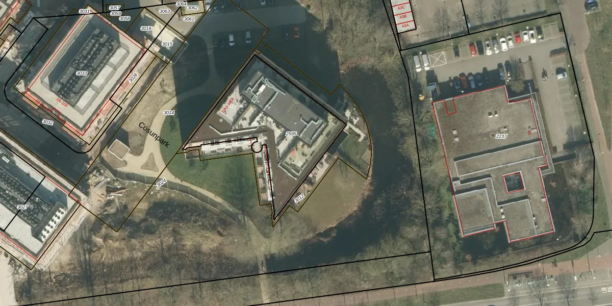 Cosunpark 1-B5 is gelegen op kadastraal perceel PCH00P2595. Deze kadastrale aanduiding is uniek en wordt gebruikt door het Kadaster om eigendomsrechten en andere zakelijke rechten vast te leggen. Het perceel maakt onderdeel uit van de kadastrale gemeente Princenhage.