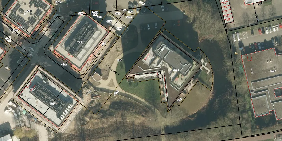 Cosunpark 1-D2 is gelegen op kadastraal perceel PCH00P2595. Deze kadastrale aanduiding is uniek en wordt gebruikt door het Kadaster om eigendomsrechten en andere zakelijke rechten vast te leggen. Het perceel maakt onderdeel uit van de kadastrale gemeente Princenhage.