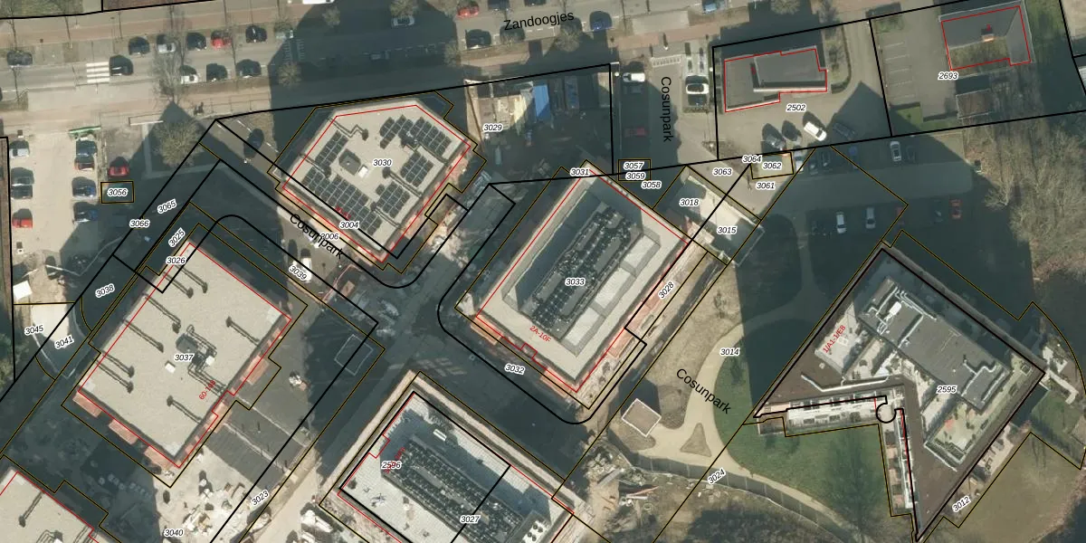 Het perceel waarop Cosunpark 4-D staat heeft een oppervlakte van 1025 m². Dit is een zeer groot perceel. De perceeloppervlakte wordt geregistreerd door het Kadaster. Gedetailleerde informatie over de maten van dit perceel kunt u vinden in het rapport Kadastrale kaart met maatvoering van Cosunpark 4-D.