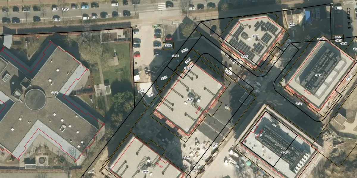 Het perceel waarop Cosunpark 64 staat heeft een oppervlakte van 1105 m². Dit is een zeer groot perceel. De perceeloppervlakte wordt geregistreerd door het Kadaster. Gedetailleerde informatie over de maten van dit perceel kunt u vinden in het rapport Kadastrale kaart met maatvoering van Cosunpark 64.