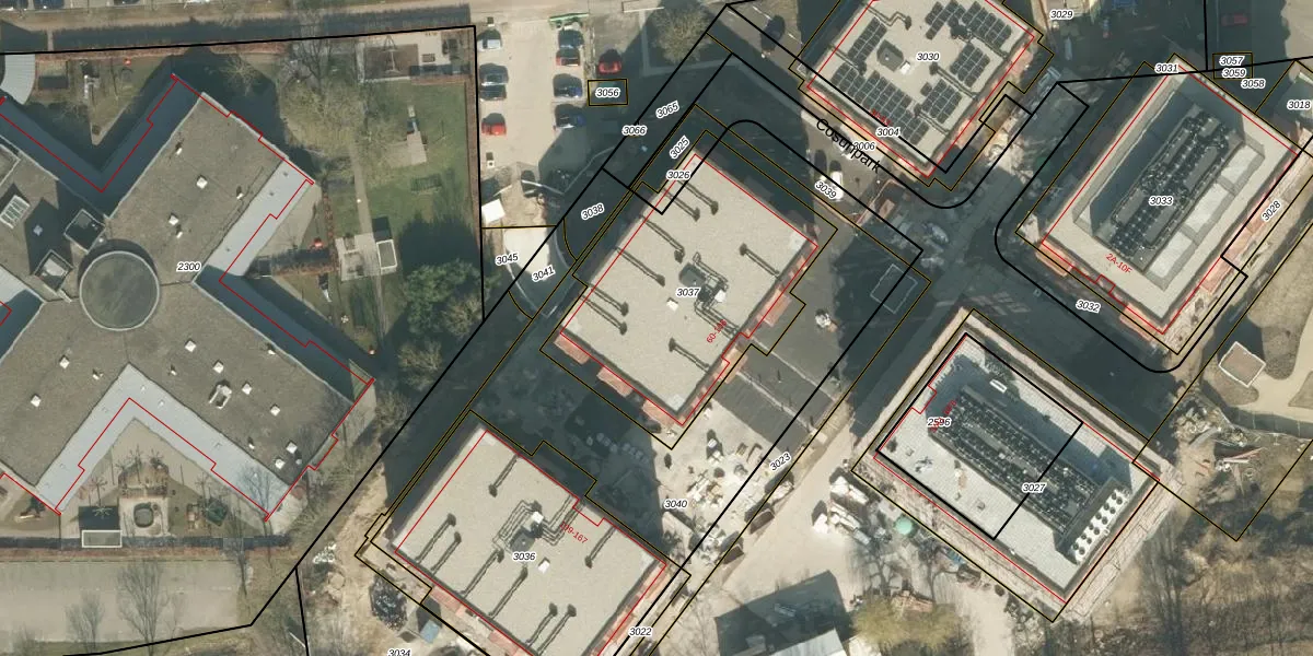 Het perceel waarop Cosunpark 69 staat heeft een oppervlakte van 1105 m². Dit is een zeer groot perceel. De perceeloppervlakte wordt geregistreerd door het Kadaster. Gedetailleerde informatie over de maten van dit perceel kunt u vinden in het rapport Kadastrale kaart met maatvoering van Cosunpark 69.