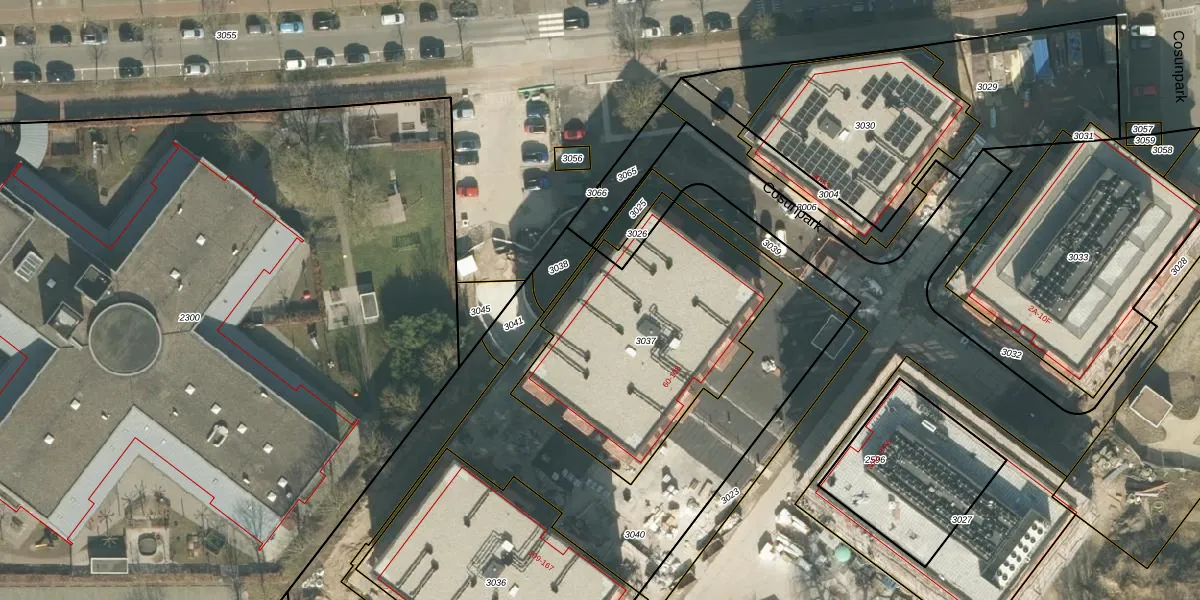 Het perceel waarop Cosunpark 74 staat heeft een oppervlakte van 1105 m². Dit is een zeer groot perceel. De perceeloppervlakte wordt geregistreerd door het Kadaster. Gedetailleerde informatie over de maten van dit perceel kunt u vinden in het rapport Kadastrale kaart met maatvoering van Cosunpark 74.