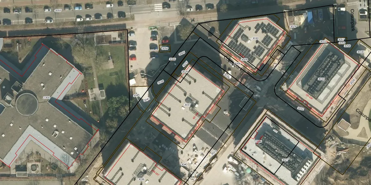 Het perceel waarop Cosunpark 76 staat heeft een oppervlakte van 1105 m². Dit is een zeer groot perceel. De perceeloppervlakte wordt geregistreerd door het Kadaster. Gedetailleerde informatie over de maten van dit perceel kunt u vinden in het rapport Kadastrale kaart met maatvoering van Cosunpark 76.
