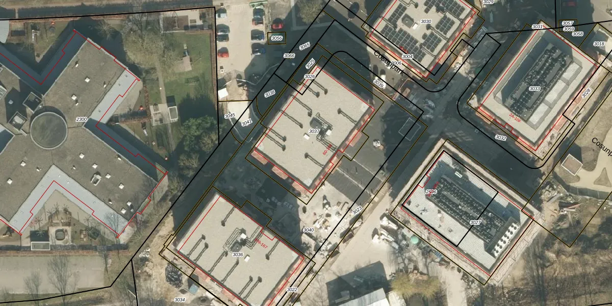Het perceel waarop Cosunpark 89 staat heeft een oppervlakte van 1105 m². Dit is een zeer groot perceel. De perceeloppervlakte wordt geregistreerd door het Kadaster. Gedetailleerde informatie over de maten van dit perceel kunt u vinden in het rapport Kadastrale kaart met maatvoering van Cosunpark 89.