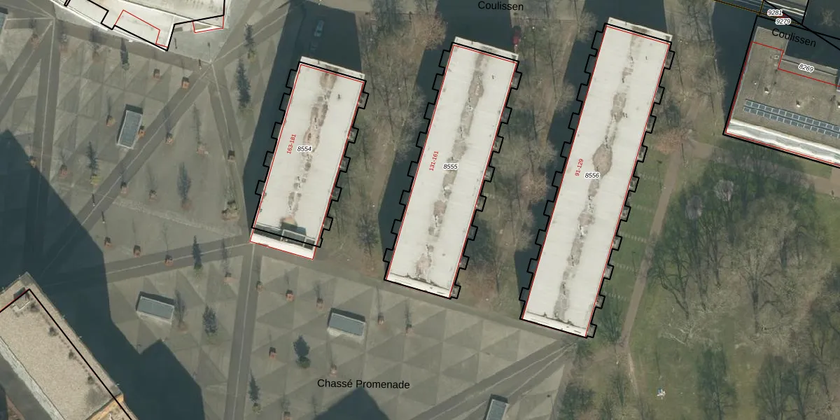 Het perceel waarop Coulissen 157 staat heeft een oppervlakte van 1052 m². Dit is een zeer groot perceel. De perceeloppervlakte wordt geregistreerd door het Kadaster. Gedetailleerde informatie over de maten van dit perceel kunt u vinden in het rapport Kadastrale kaart met maatvoering van Coulissen 157.