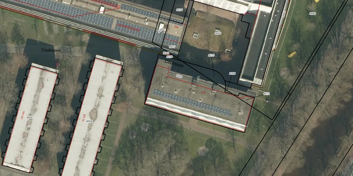 Het perceel waarop Coulissen 23 staat heeft een oppervlakte van 1417 m². Dit is een zeer groot perceel. De perceeloppervlakte wordt geregistreerd door het Kadaster. Gedetailleerde informatie over de maten van dit perceel kunt u vinden in het rapport Kadastrale kaart met maatvoering van Coulissen 23.