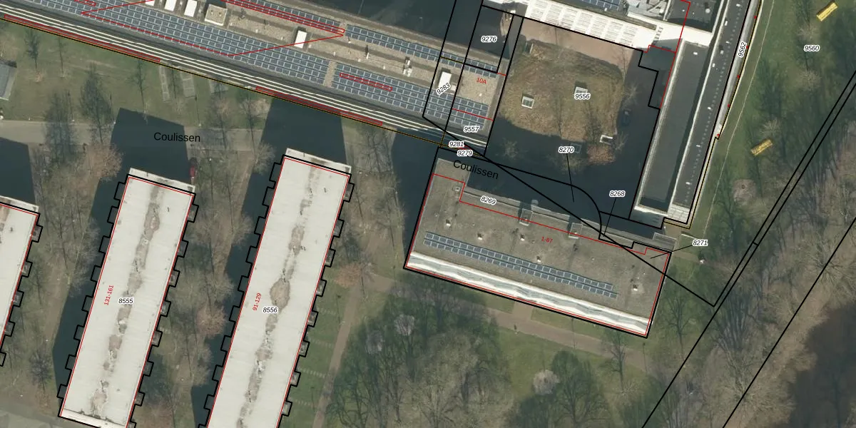 Het perceel waarop Coulissen 3 staat heeft een oppervlakte van 1417 m². Dit is een zeer groot perceel. De perceeloppervlakte wordt geregistreerd door het Kadaster. Gedetailleerde informatie over de maten van dit perceel kunt u vinden in het rapport Kadastrale kaart met maatvoering van Coulissen 3.