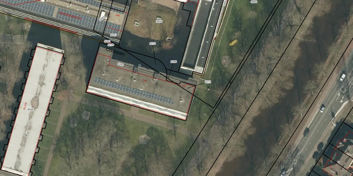 Het perceel waarop Coulissen 73 staat heeft een oppervlakte van 1417 m². Dit is een zeer groot perceel. De perceeloppervlakte wordt geregistreerd door het Kadaster. Gedetailleerde informatie over de maten van dit perceel kunt u vinden in het rapport Kadastrale kaart met maatvoering van Coulissen 73.