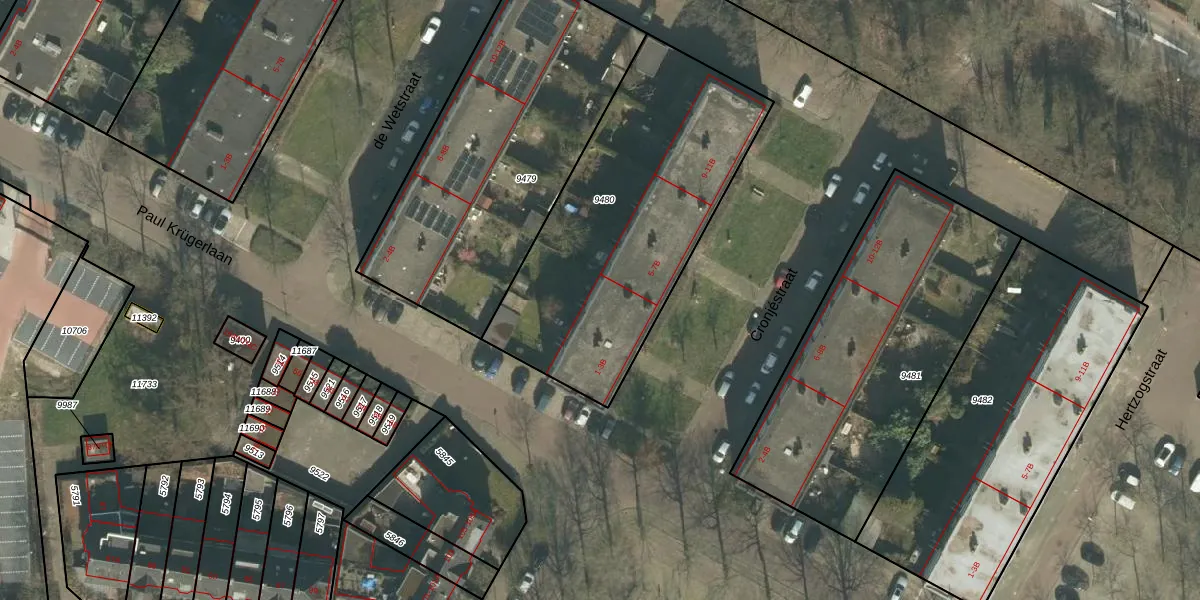 Het perceel waarop Cronjéstraat 3-B staat heeft een oppervlakte van 1384 m². Dit is een zeer groot perceel. De perceeloppervlakte wordt geregistreerd door het Kadaster. Gedetailleerde informatie over de maten van dit perceel kunt u vinden in het rapport Kadastrale kaart met maatvoering van Cronjéstraat 3-B.