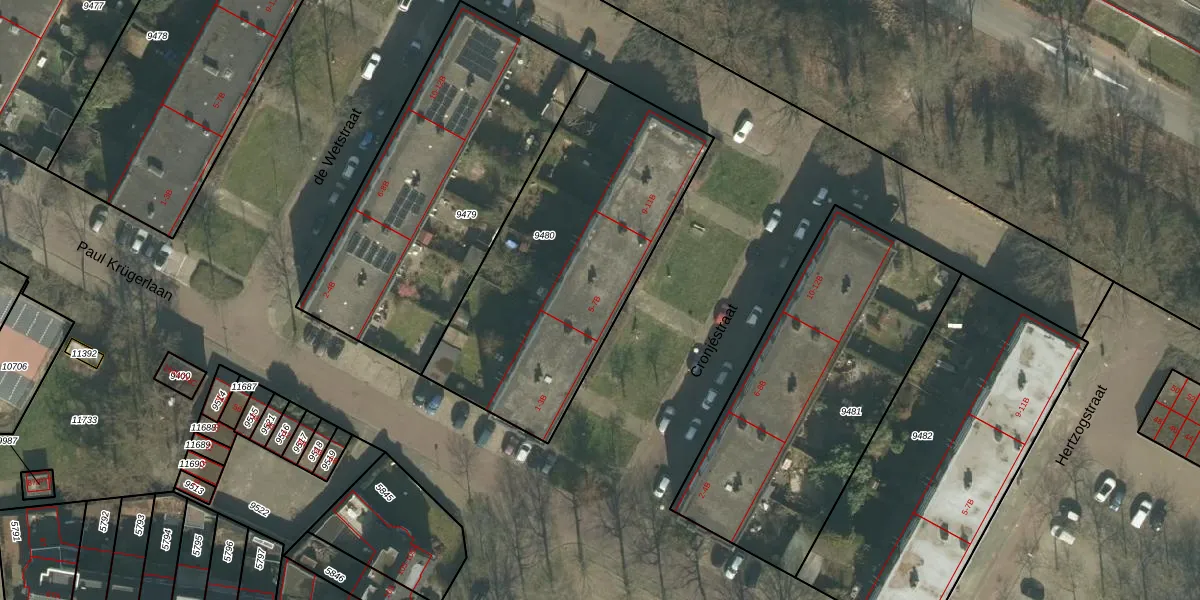 Het perceel waarop Cronjéstraat 5 staat heeft een oppervlakte van 1384 m². Dit is een zeer groot perceel. De perceeloppervlakte wordt geregistreerd door het Kadaster. Gedetailleerde informatie over de maten van dit perceel kunt u vinden in het rapport Kadastrale kaart met maatvoering van Cronjéstraat 5.