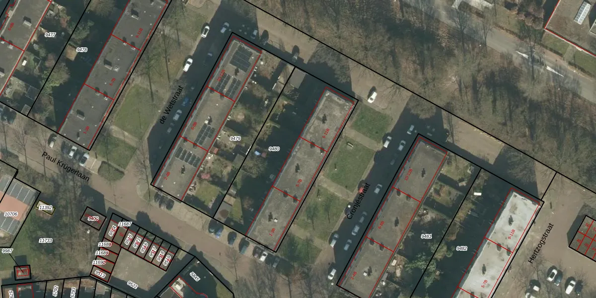 Cronjéstraat 7-B is gelegen op kadastraal perceel BDA00D9480. Deze kadastrale aanduiding is uniek en wordt gebruikt door het Kadaster om eigendomsrechten en andere zakelijke rechten vast te leggen. Het perceel maakt onderdeel uit van de kadastrale gemeente Breda.