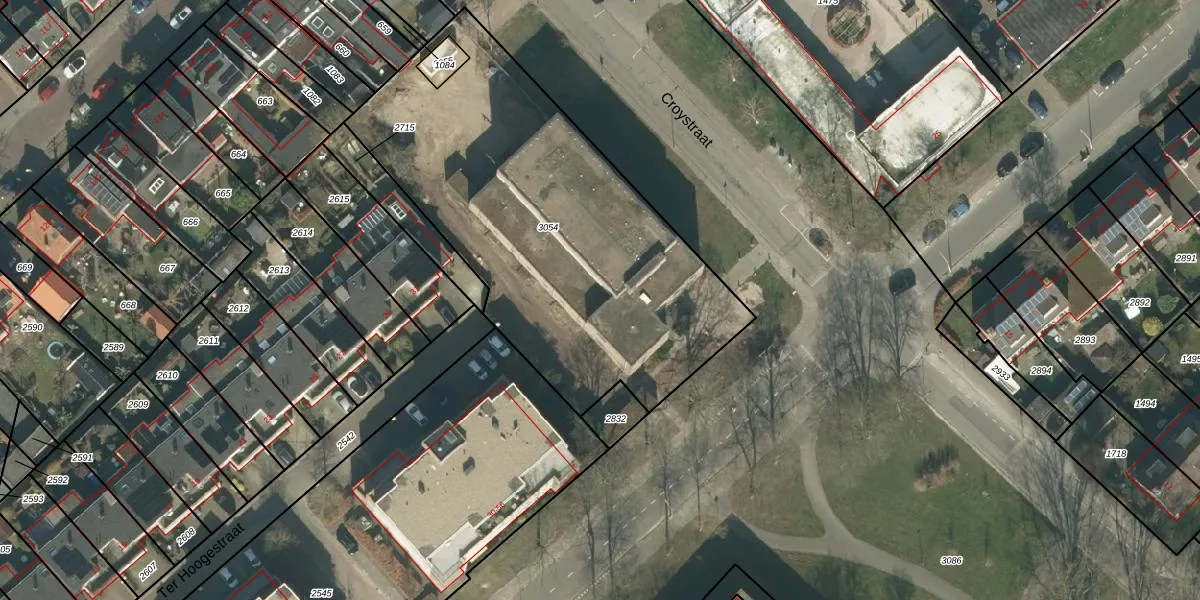Het perceel waarop Croystraat 30 staat heeft een oppervlakte van 2047 m². Dit is een zeer groot perceel. De perceeloppervlakte wordt geregistreerd door het Kadaster. Gedetailleerde informatie over de maten van dit perceel kunt u vinden in het rapport Kadastrale kaart met maatvoering van Croystraat 30.