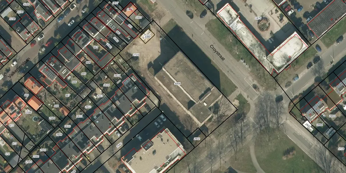 Het perceel waarop Croystraat 32 staat heeft een oppervlakte van 2047 m². Dit is een zeer groot perceel. De perceeloppervlakte wordt geregistreerd door het Kadaster. Gedetailleerde informatie over de maten van dit perceel kunt u vinden in het rapport Kadastrale kaart met maatvoering van Croystraat 32.