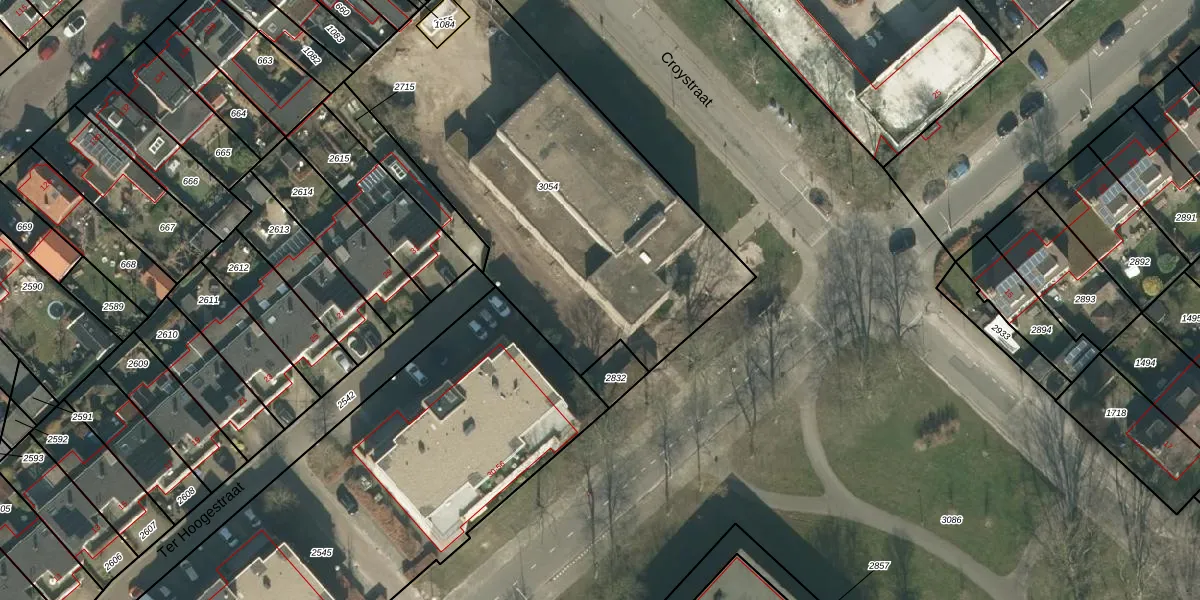 Het perceel waarop Croystraat 42 staat heeft een oppervlakte van 2047 m². Dit is een zeer groot perceel. De perceeloppervlakte wordt geregistreerd door het Kadaster. Gedetailleerde informatie over de maten van dit perceel kunt u vinden in het rapport Kadastrale kaart met maatvoering van Croystraat 42.