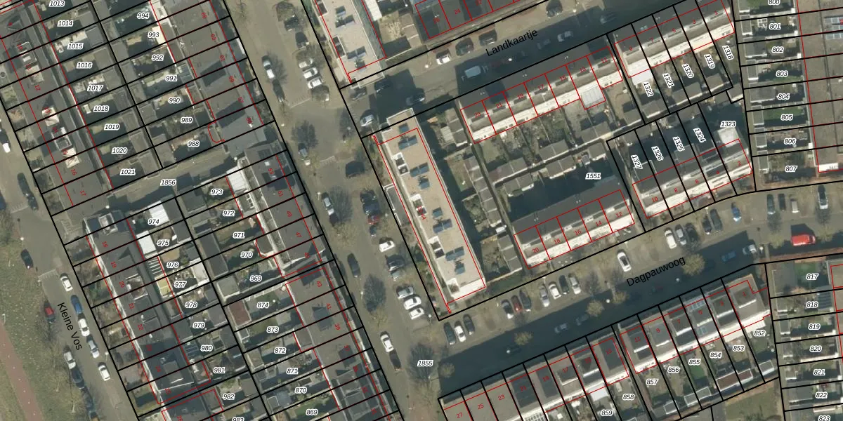 Het perceel waarop Dagpauwoog 34 staat heeft een oppervlakte van 2752 m². Dit is een zeer groot perceel. De perceeloppervlakte wordt geregistreerd door het Kadaster. Gedetailleerde informatie over de maten van dit perceel kunt u vinden in het rapport Kadastrale kaart met maatvoering van Dagpauwoog 34.