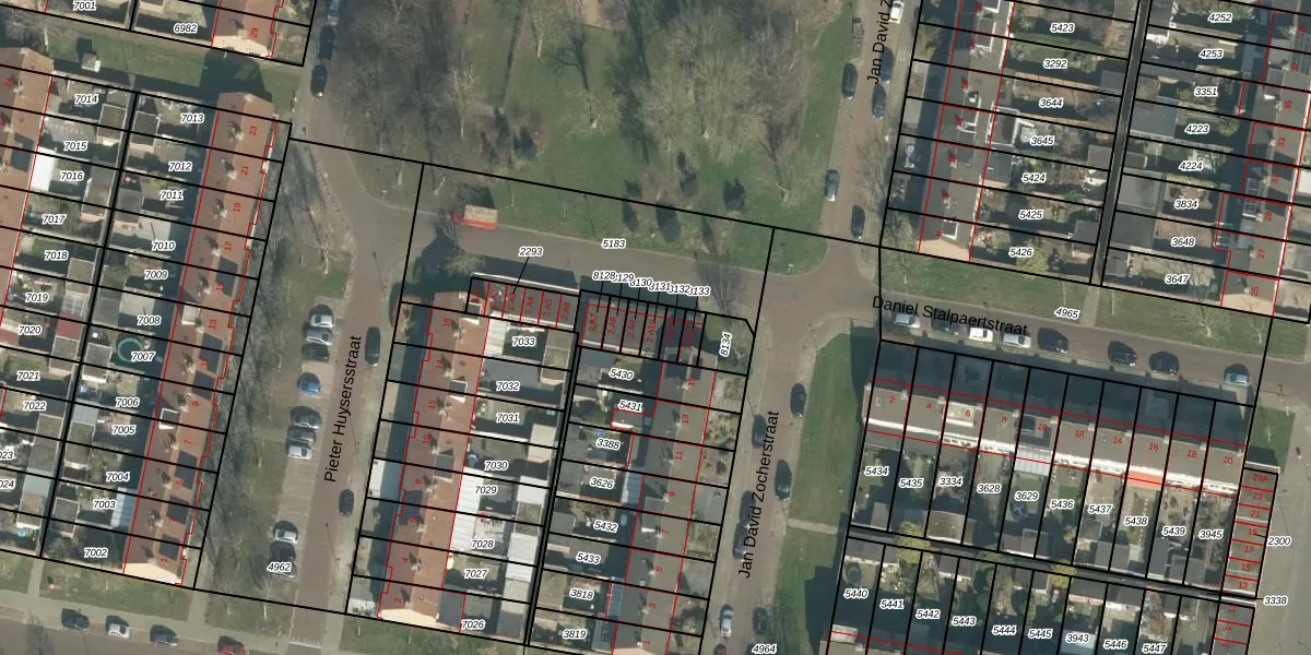 Gebruik de zoekbalk of klik op een perceel voor informatie over de adressen binnen dit perceel.