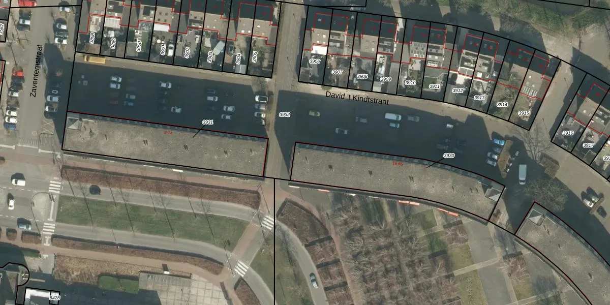 Het perceel waarop David 't Kindtstraat 55 staat heeft een oppervlakte van 874 m². Dit is een groot perceel. De perceeloppervlakte wordt geregistreerd door het Kadaster. Gedetailleerde informatie over de maten van dit perceel kunt u vinden in het rapport Kadastrale kaart met maatvoering van David 't Kindtstraat 55.