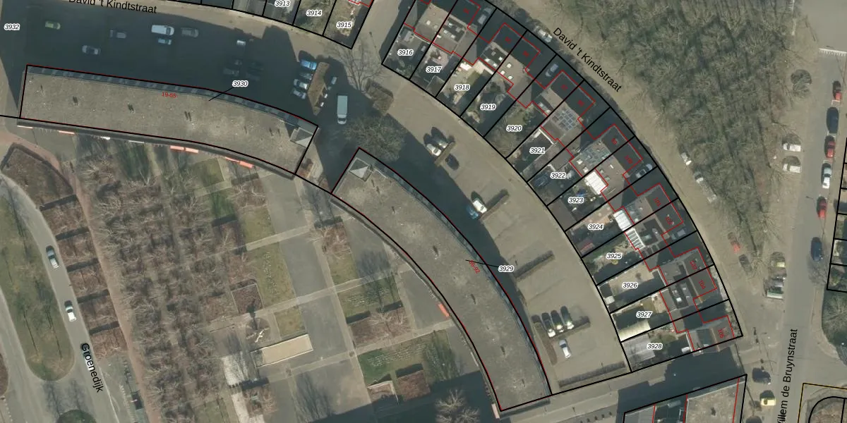 David 't Kindtstraat 66 is gelegen op kadastraal perceel BDA00G3929. Deze kadastrale aanduiding is uniek en wordt gebruikt door het Kadaster om eigendomsrechten en andere zakelijke rechten vast te leggen. Het perceel maakt onderdeel uit van de kadastrale gemeente Breda.